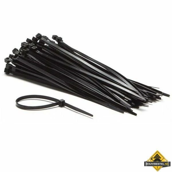 100-delige set met zwarte nylon kabelbinders – 4.6 x 200 mm (Professionele kwaliteit)