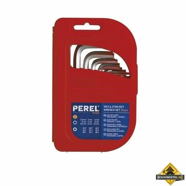 - zeskant (9 st.): 1.5, 2, 2.5, 3, 4, 5, 6, 8, 10mm met ballpoint aan het eind van de lange zijde