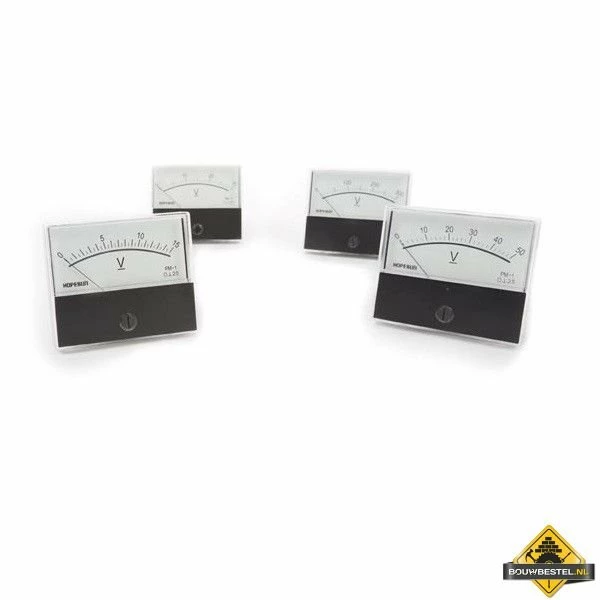 Draaispoelpaneelmeters voor gebruik in elektronische instrumenten, schakelborden, voertuigen, etc. Met nulregelaar. Klasse 2.5.