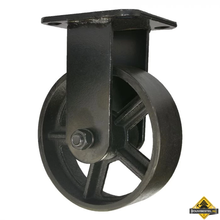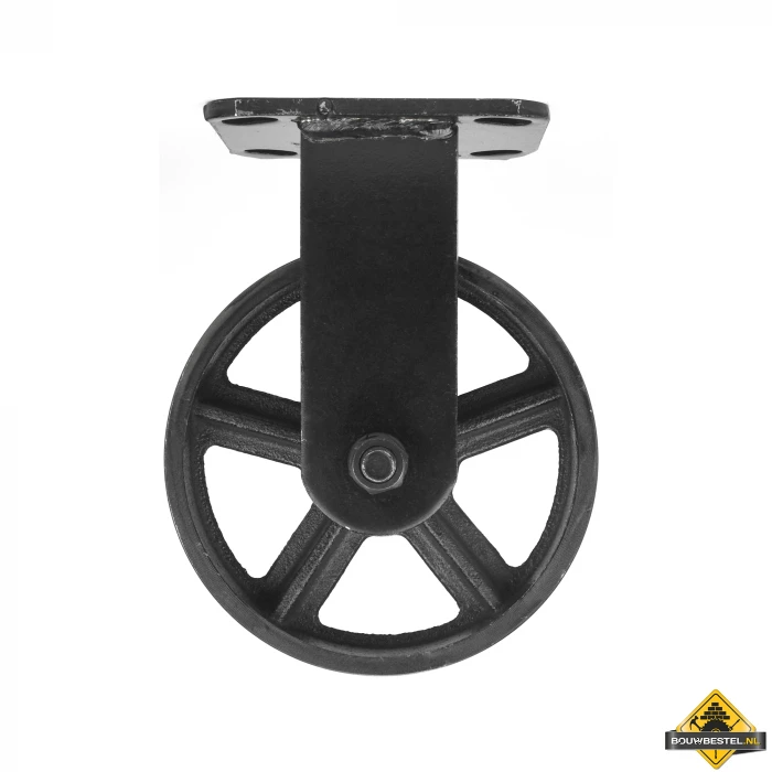 Dit bokwiel is uitermate geschikt voor plaatsing onder meubels, trolleys, salontafels, plantenstandaarden, boekenplanken, etc. De bokwielen zijn geheel zwart afgewerkt voor een strakke uitstraling. De bokwielen van Bouwbestel worden geproduceerd door een A-merk fabrikant. Materiaal behuizing: gietijzer. Materiaal wiel: gietijzer. Diameter wiel: 150 mm. Kleur: zwart: Afmetingen (B x D x H): 14,5 x 9,7 x 19,5 cm. Draagvermogen: 280 kg. Met rem: Nee.