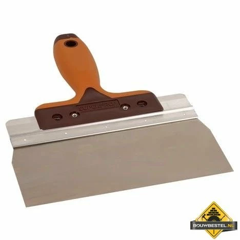 Aluminium breedspachtel met Amerikaanse ergonomische soft greep. Voor het dichten van voegen en opvullen van scheuren of gaten.
