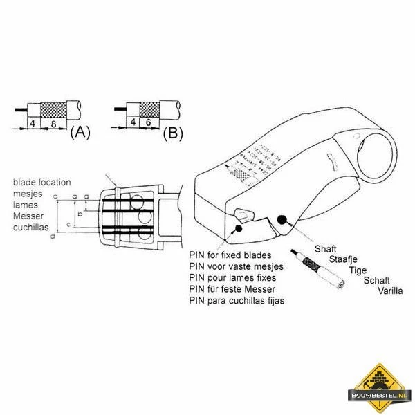 Coaxkabelstripper met 3 regelbare messen. Strippen van kabels RG58/59/62. Verwijdert ook de buitenste isolatie.