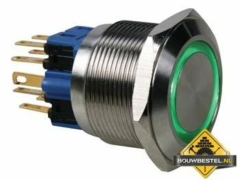 Drukknop – Plat – Roestvrij Staal – Dpst 1No 1Nc – Groene Ring