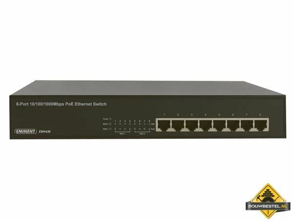 Eminent – Power Over Ethernet Gigabit Switch – 8 Poe-Poorten – 10/100/1000 Mbps