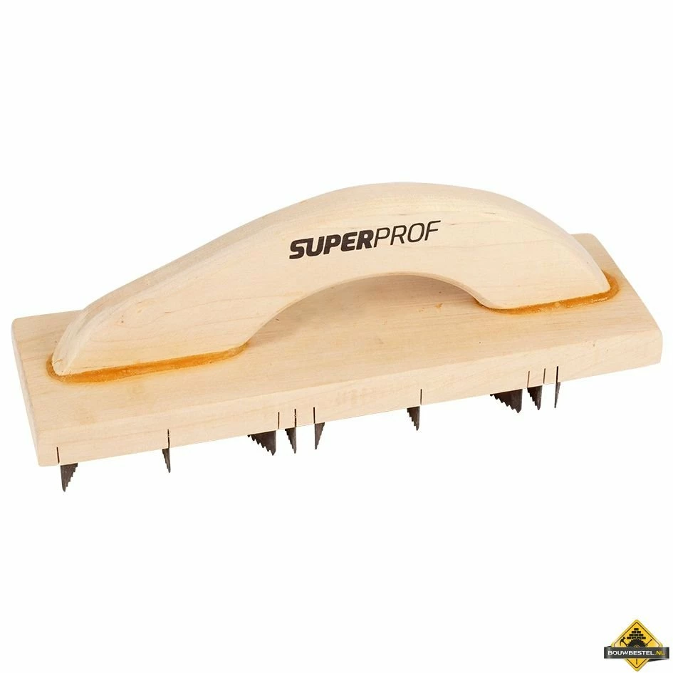 Super Prof houten gasbetonschaaf met traditionele houten greep voor het afschrapen of egaliseren van droog/hard, maar nog niet uitgehard, gipspleisterwerk.