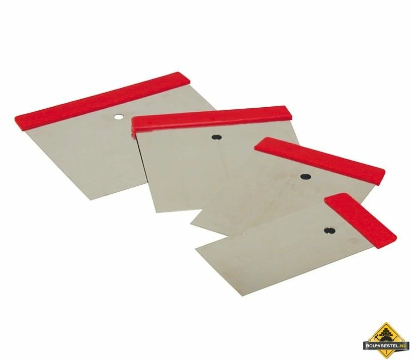 De set bestaat uit vier spachtelmessen met een breedte van 50, 80, 100 & 120 cm.