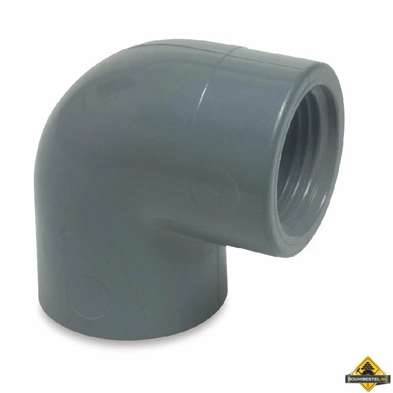 Knie 90 graden PVC-U 1/2 inch x 1/2 inch imperial lijmmof x binnendraad 10 bar grijs (leverbaar binnen 2-3 werkdagen)