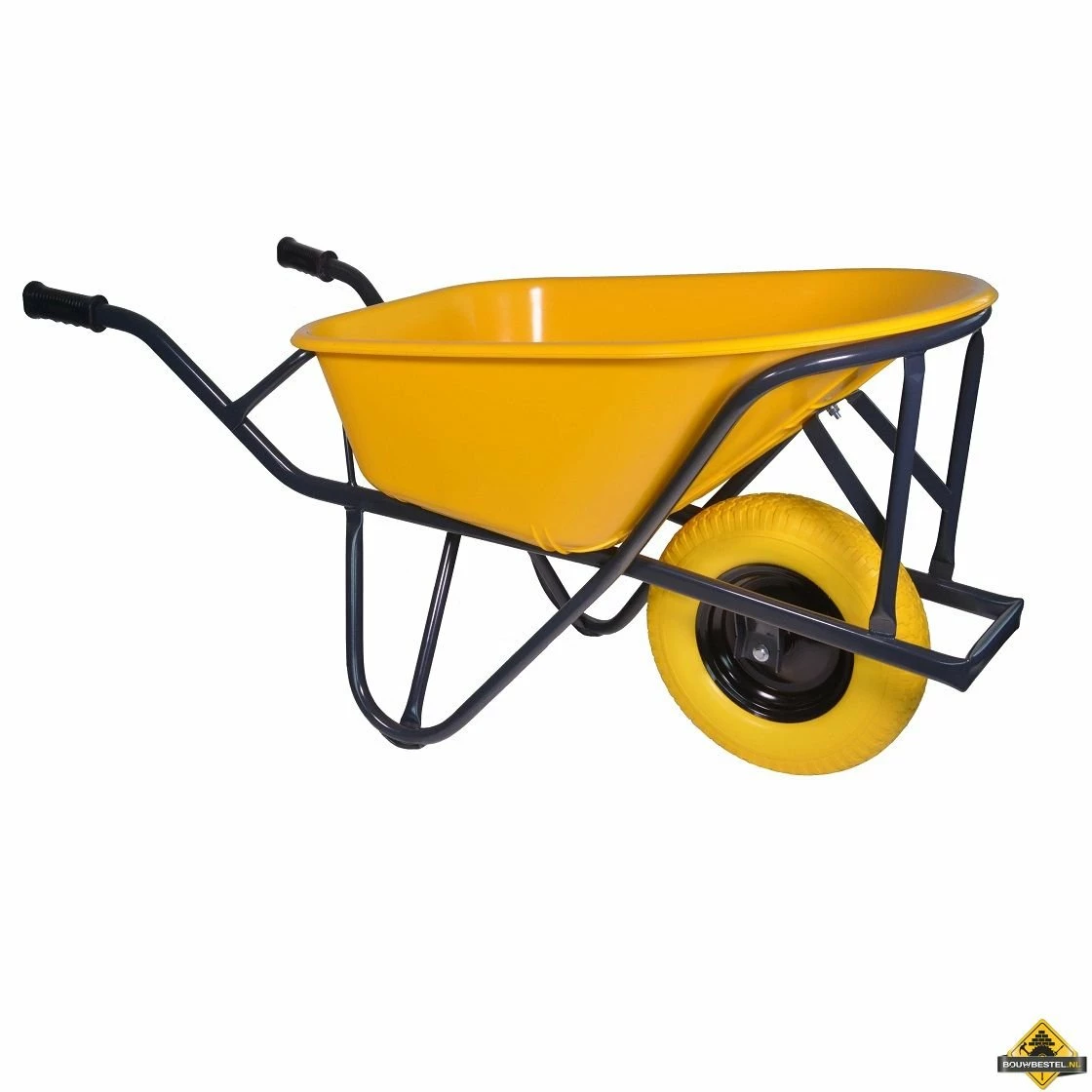 Kruiwagen HDPE 90 Liter stratenmakers geel softwiel (anti-lek band) – NL-fabricaat