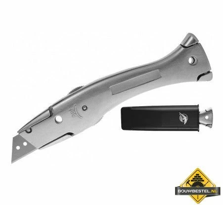 De Delphin 03, het originele aluminium Delphin mes, van Duits fabricaat. Een professioneel Delphin mes, bedoeld voor het snijden van stevige materialen. Aan de binnenzijde van deze Delhin meshouder is ruimte voor 10 extra messen. Het Delphin 03 mes is 16cm lang, inclusief de koker is het Delphin 03 mes 19 cm lang.