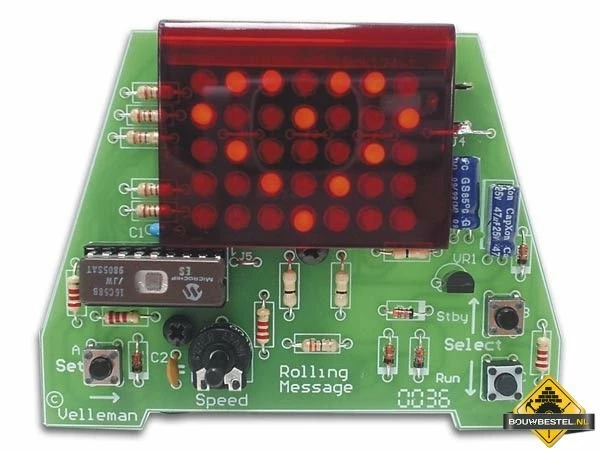 Kies de karakters met de op of neer toets en beëindig met het “<“-teken. Druk op “Stby” om de display in de ruststand te plaatsen, druk op RUN om te starten.