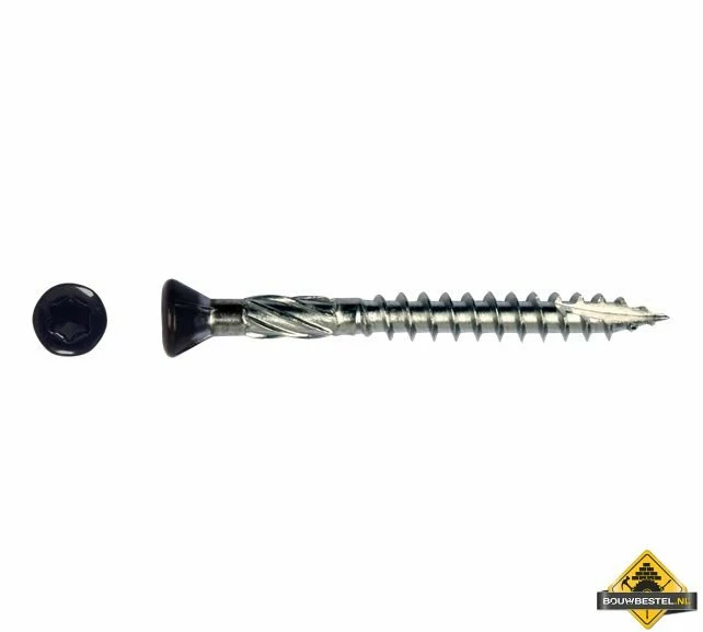 Top kwaliteit RVS Torx hardhoutschroef 5×50 Inox C2 (T-25) gereduceerde kop T-ster met freesribben gedeeltelijke draad-AISI 410 – met zwarte kop = potdekselschroef