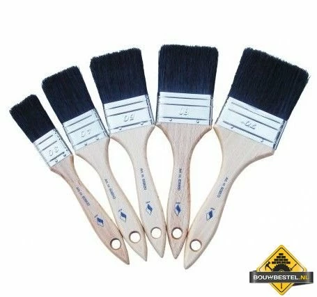 Platte kwast van Super Prof, ideaal voor uw verfwerkzaamheden. De kwast is dubbeldik, heeft zwarte haren en een houten steel.