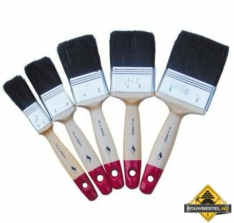 Platte kwast van Super Prof, ideaal voor uw verfwerkzaamheden. De kwast is dubbeldik, heeft zwarte haren en een houten steel.