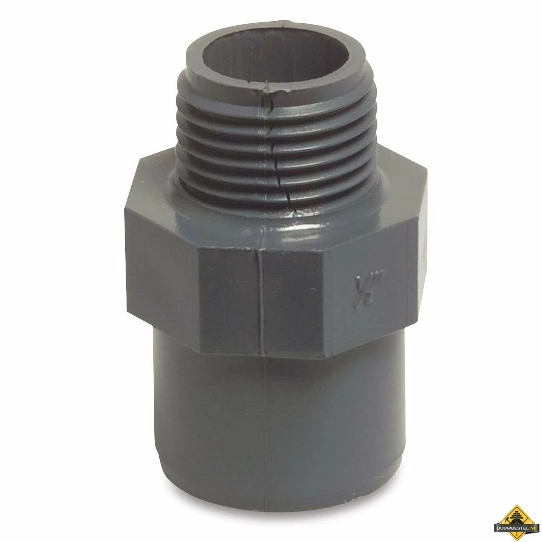 Puntstuk PVC-U 3/4 inch x 3/4 inch imperial lijmmof x buitendraad 10 bar grijs (leverbaar binnen 2-3 werkdagen)