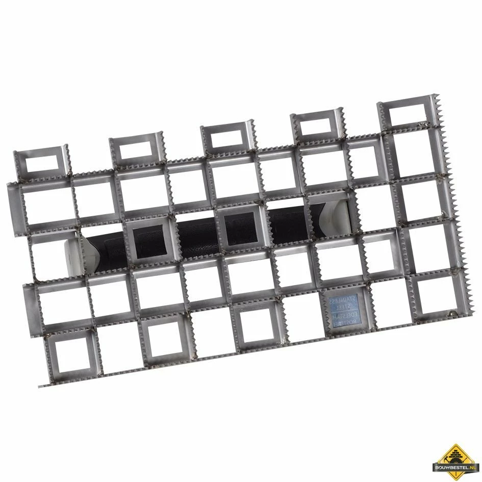 Rabatschaaf aluminium met getante RVS messen en soft greep voor het opruwen van pleisterwerk.
