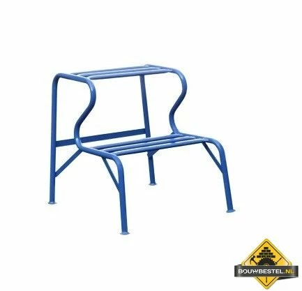Gelakt stukadoorsbankje met 2 treden met aan een zijde 2 treden