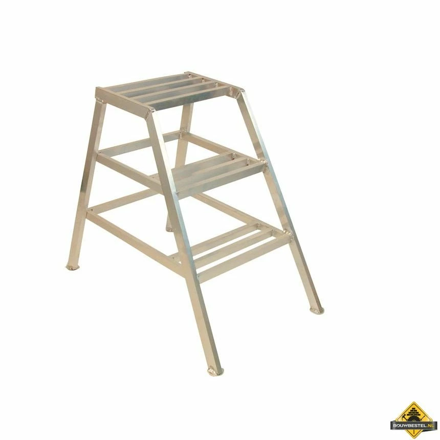 Aluminium stukadoorsbankje met 3 treden die aan beide zijden te betreden zijn.
