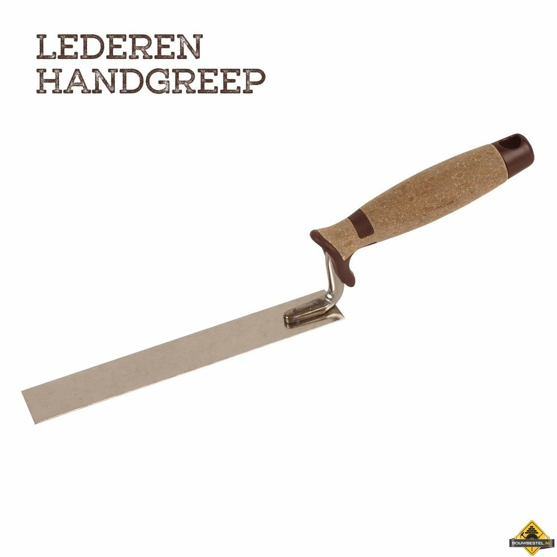 Super Prof Eco Pure reparatietroffel. Gepuntlaste verbinding en RVS. Alle Pure producten zijn voorzien van een ergonomische lederen handgreep met vingerbescherming, welke een goede grip geeft en het vocht beter opneemt. Hierdoor wordt het werkcomfort en de productiviteit bevordert.