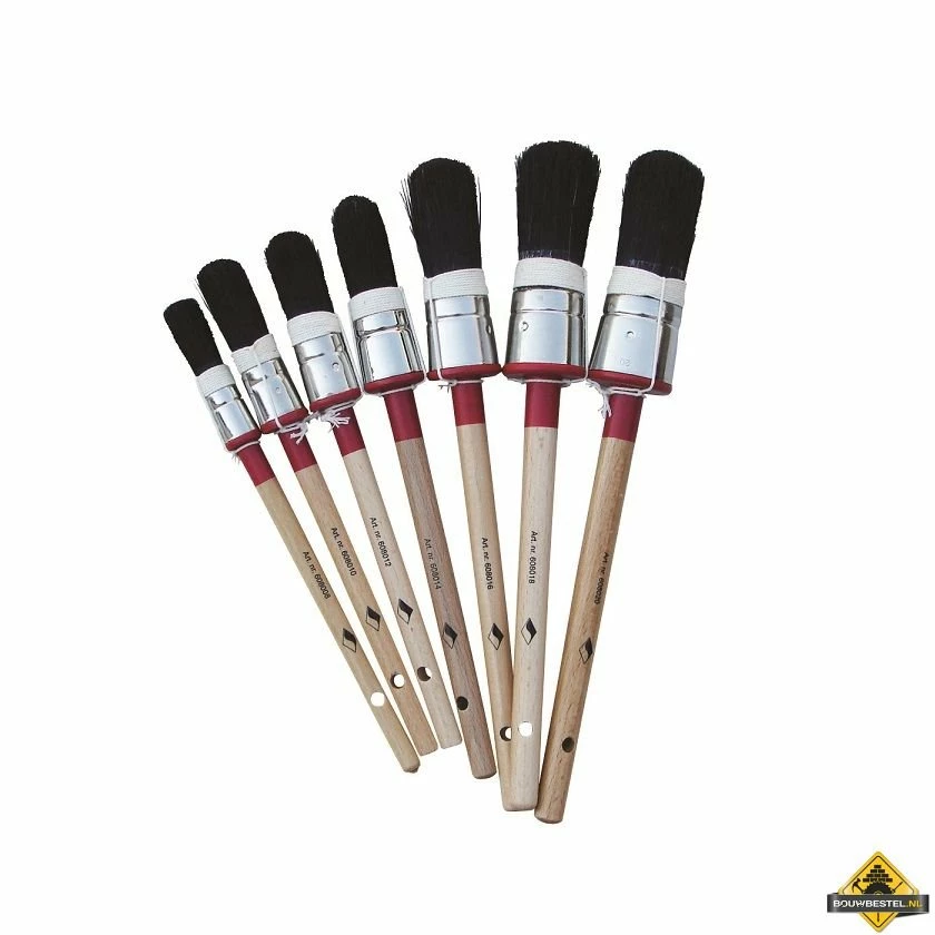 Super Prof patentpuntkwast zwart haar houten steel opgebonden.