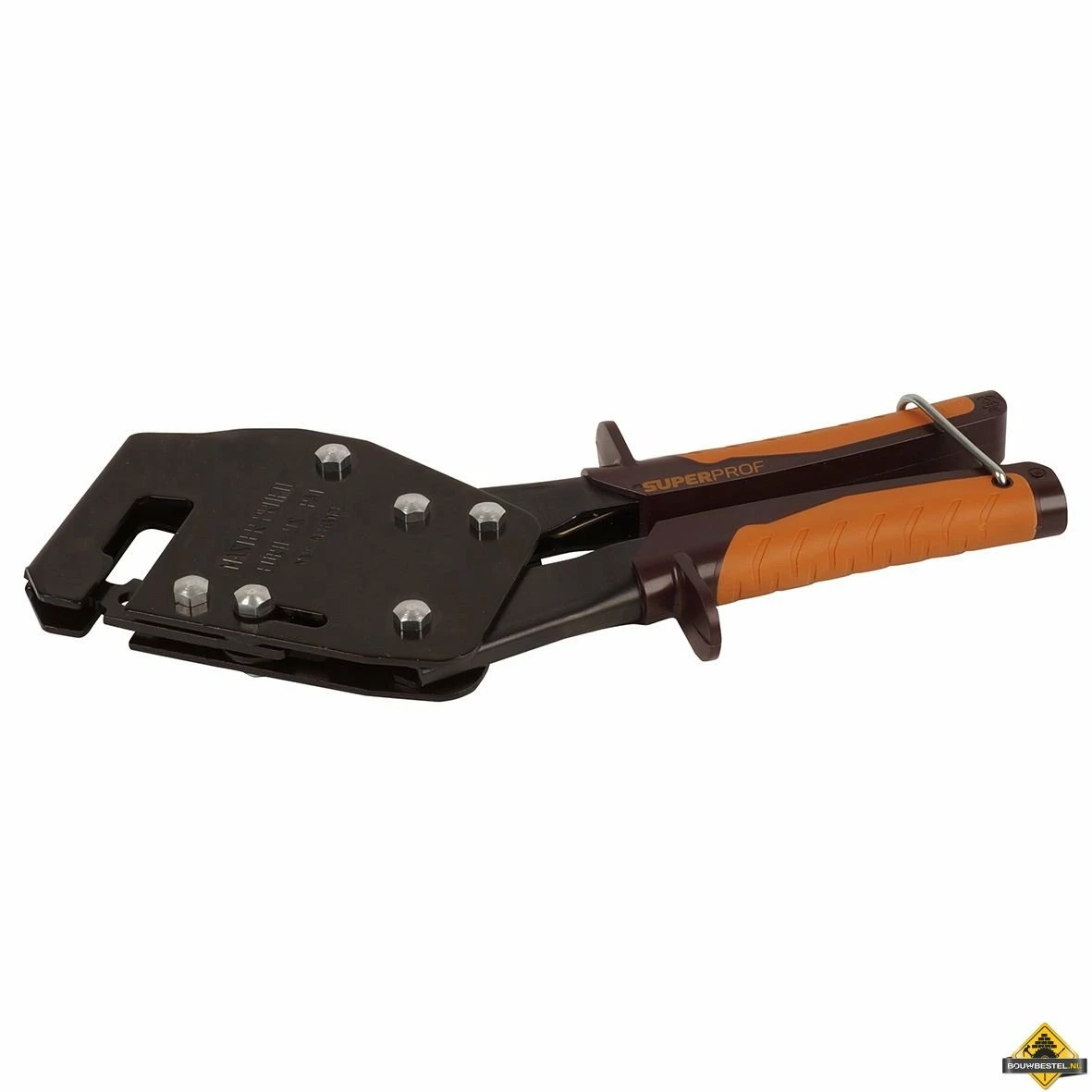 Eenhandsbediening profielverbindingstang om metal-stud profielen voor scheidingswanden of verlaagde plafonds aan elkaar te verbinden.