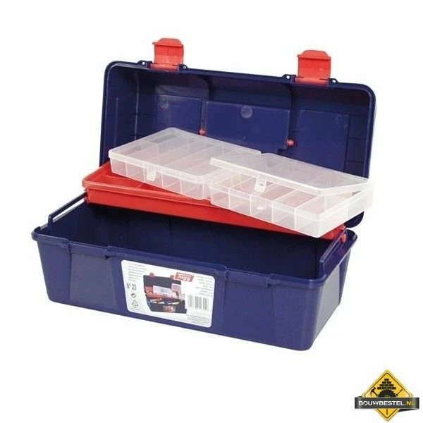 Deze TAYG gereedschapskoffer 360 x 180 x 160 mm is een kwalitatieve opbergkoffer met een verwijderbare inlegbak en sorteerdoos. De koffer is verder nog uitgerust met een inklapbaar handvat en twee stevige kunststof sluitingen.