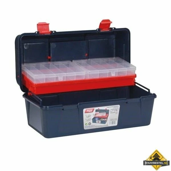 Deze TAYG gereedschapskoffer 400 x 206 x 188 mm is een kwalitatieve opbergkoffer met een verwijderbare inlegbak en sorteerdoos. De koffer is verder nog uitgerust met een inklapbaar handvat en twee stevige kunststof sluitingen.