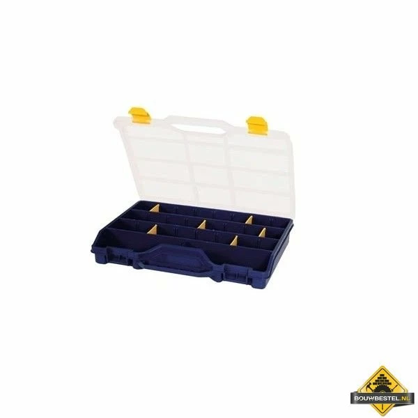 Deze handige TAYG sorteerkoffer heeft een vaste compartimenten en een transparant deksel. Ideaal om kleine accessoires in op te bergen. De sorteerdoos is voorzien van een handvat en twee stevige kunststof sluitingen.