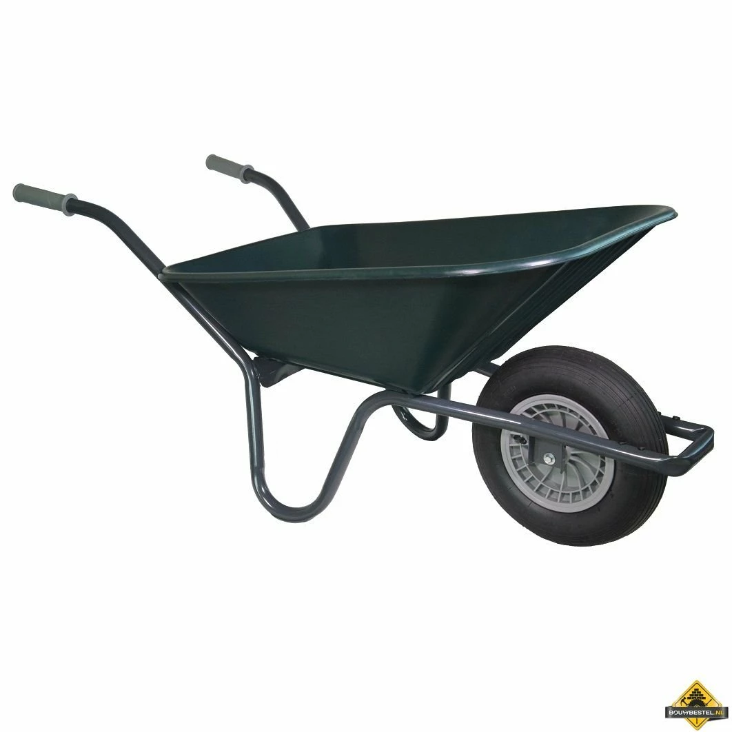 Deze kruiwagen heeft een inhoud van 80 liter. Door de rechte kopbeugel is het mogelijk om de kruiwagen rechtop te zetten. De kruiwagen ligt fijn in de hand wat zorgt voor extra comfort tijdens het gebruik.