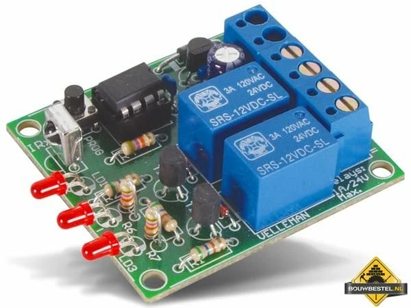 - Twee kanalen met relaisuitgang (24V AC/DC 1A max.)