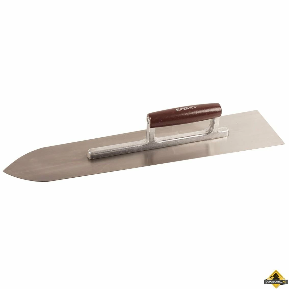 Vloerspaan met ronde voorzijde en rechte achterzijde. Gepolijst stalen blad, korte ang en traditionele houten handgreep. Deze vloerspaan is van het A-merk Super Prof en is daarmee van absolute top kwaliteit!