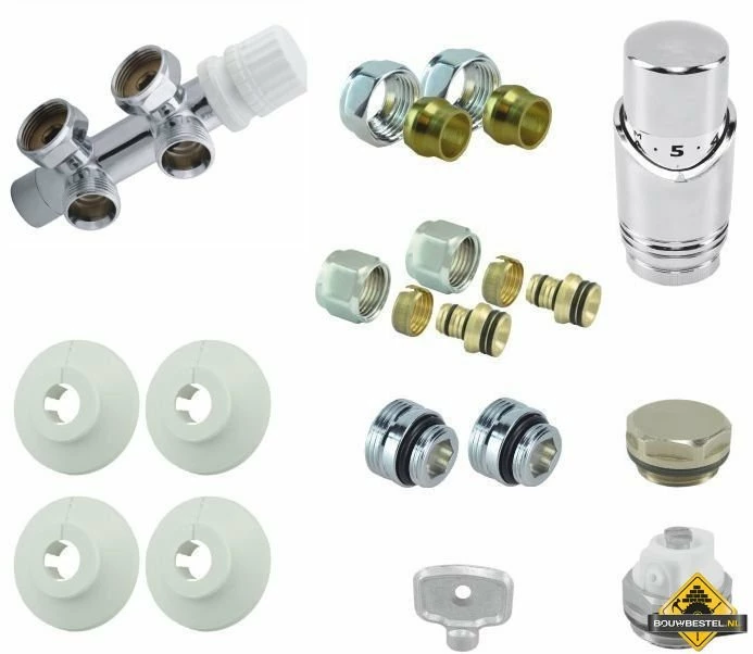 Met deze Riko onderblokset haaks links van Wiesbaden Sanitair sluit u gemakkelijk uw radiator met een midden-onder aansluiting aan, aan de muur.
