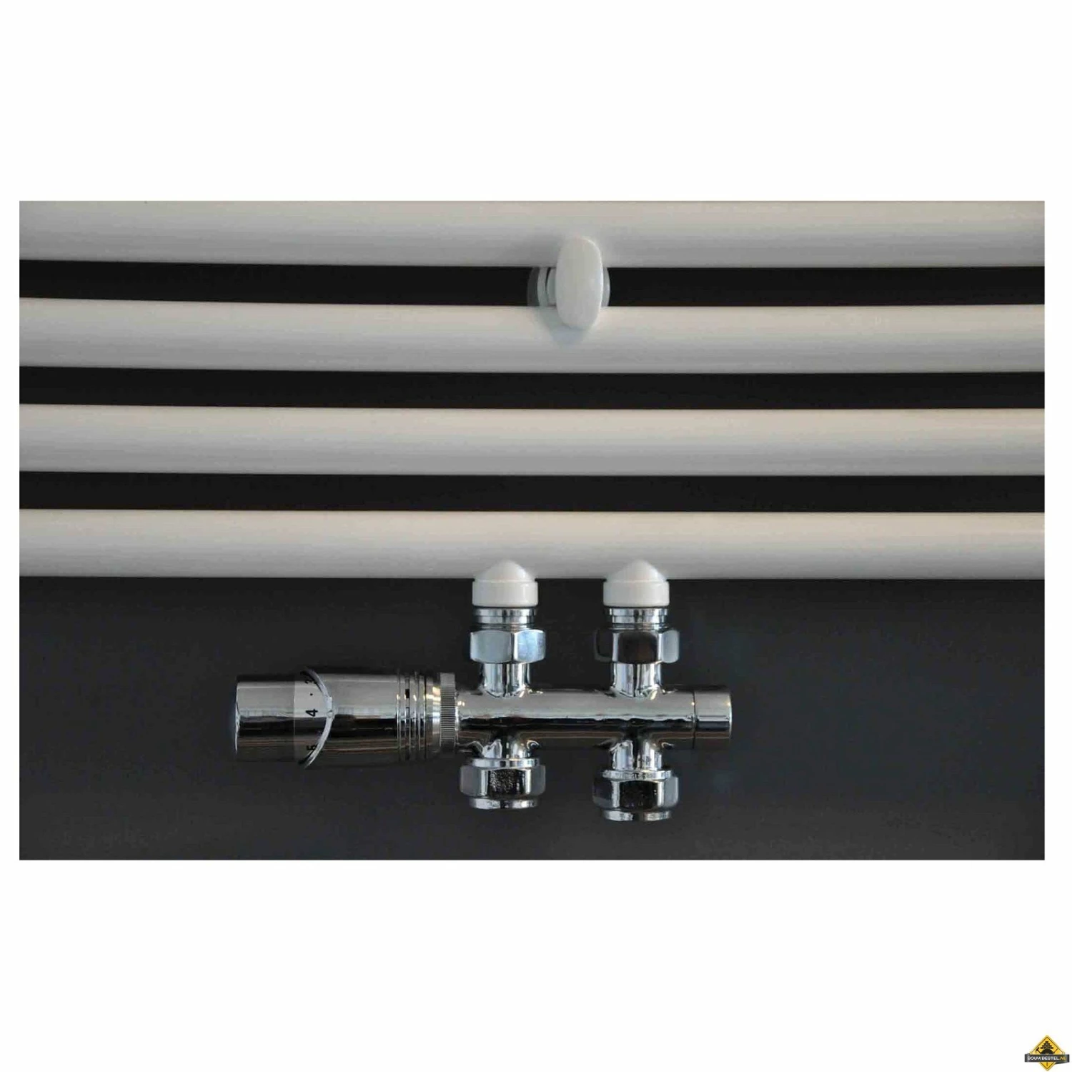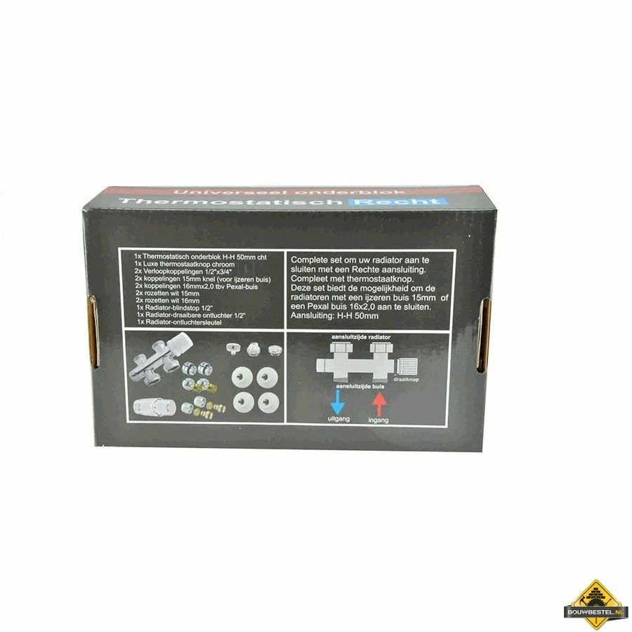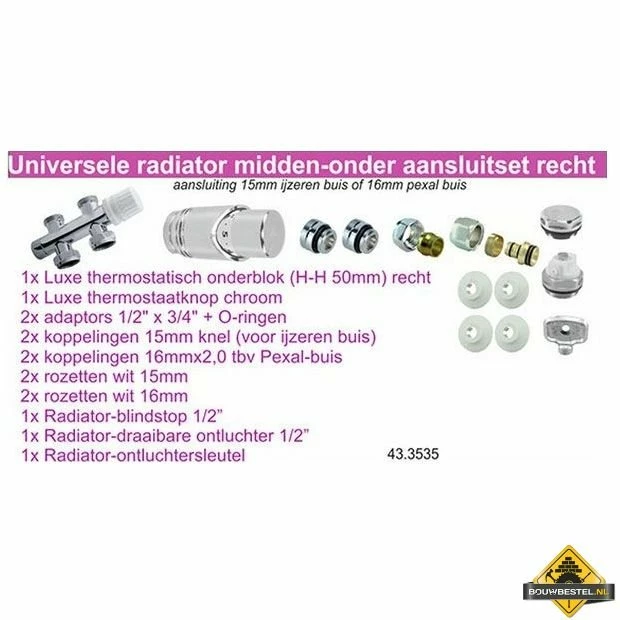 Met deze Riko onderblokset recht links/rechts van Wiesbaden Sanitair sluit u gemakkelijk uw radiator met een midden-onder aansluiting en aansluiting naar de vloer aan.