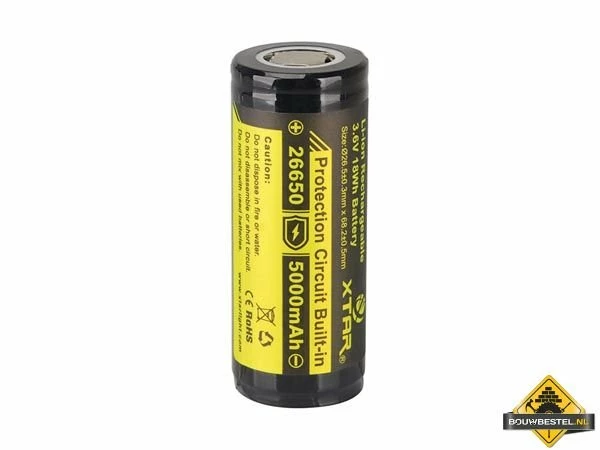 Xtar – Oplaadbare Lithium-Ion Batterij 3.6 V – 5000 Mah – 26650