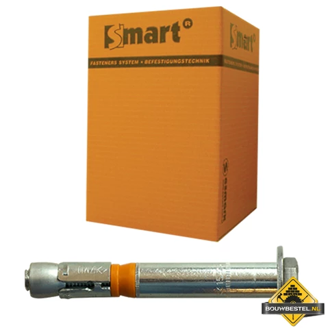 Zwaarlastanker van het A-merk SMART. De grondstof van het anker is staal. Dit type zwaarlastanker komt met zeskantschroefkop en heeft afwerking verzinkt Cr3+.