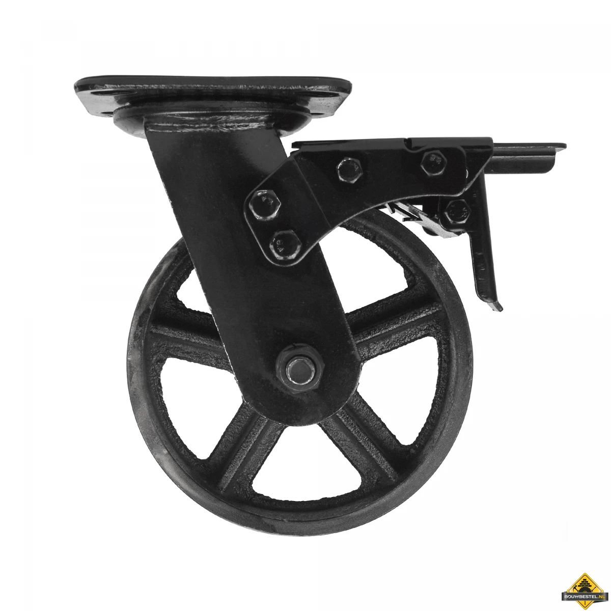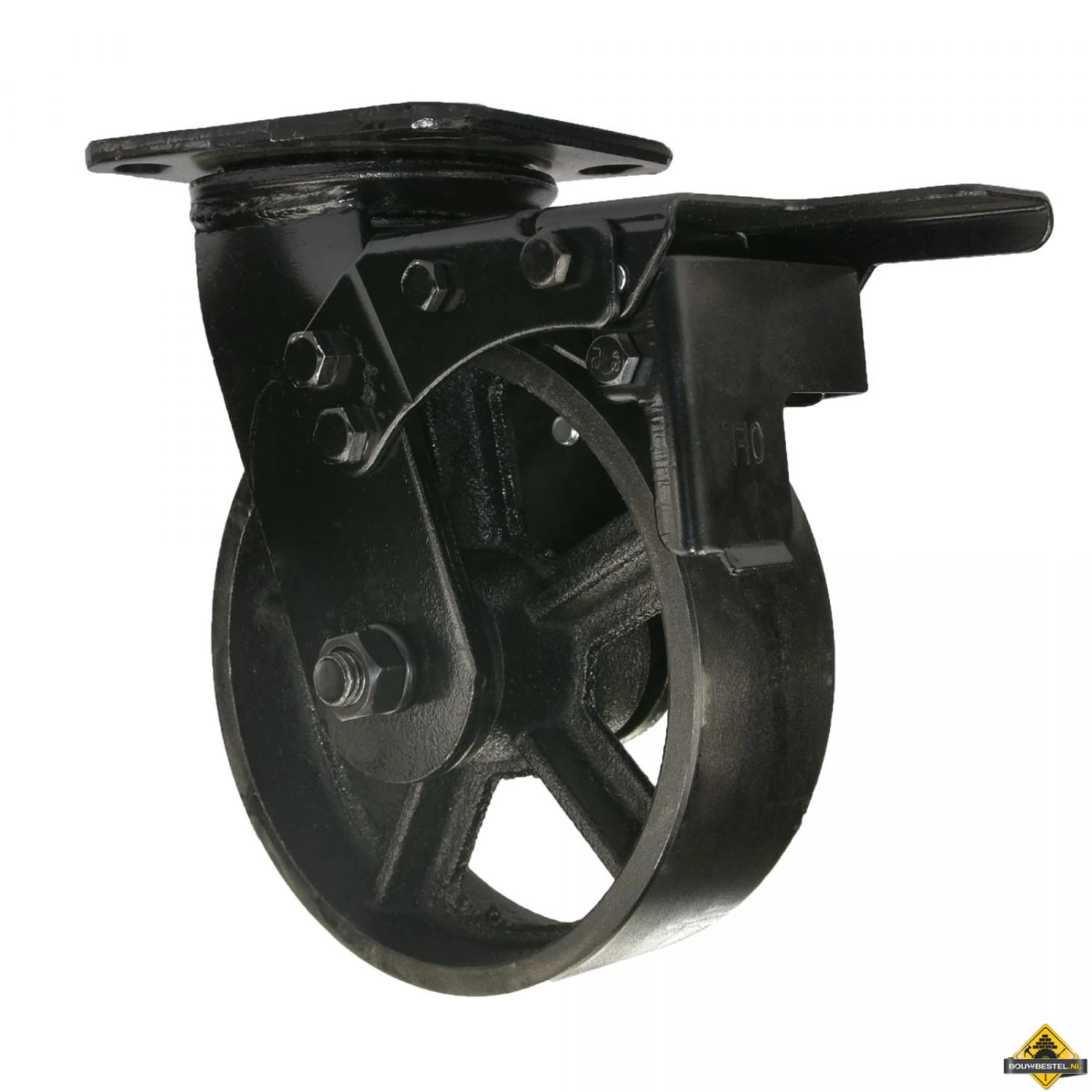 Dit zwenkwiel is uitermate geschikt voor plaatsing onder meubels, trolleys, salontafels, plantenstandaarden, boekenplanken, etc. De zwenkwielen zijn geheel zwart afgewerkt voor een strakke uitstraling. De zwenkwielen van Bouwbestel worden geproduceerd door een A-merk fabrikant. Materiaal behuizing: gietijzer. Materiaal wiel: gietijzer. Diameter wiel: 150 mm. Kleur: zwart: Afmetingen (B x D x H): 21,4 x 9,7 x 19,5 cm. Draagvermogen: 280 kg. Met rem: Ja.